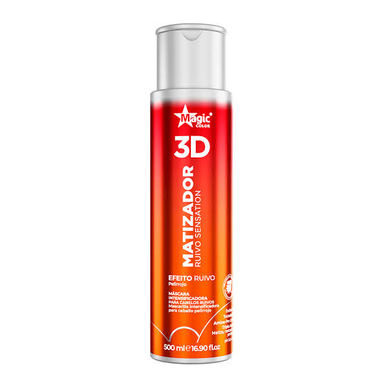 O Magic Color Tonalizante Gloss Matizador 3D Ruivo Sensation - Efeito Ruivo Intenso neutraliza os tons oxidados, adquiridos com o passar do tempo. Possui efeito Gloss, proporcionado por glitters pigmentados e o composto 3D coacervado antirrotura que fornece os aminoácidos essenciais (cisteína, lisina, glicina, arginina e tirosina), oferecendo crescimento, reeestruturação, fortalecimento, resistência e nutrição dos fios, além de queratina. seu efeito é gradual e progressivo